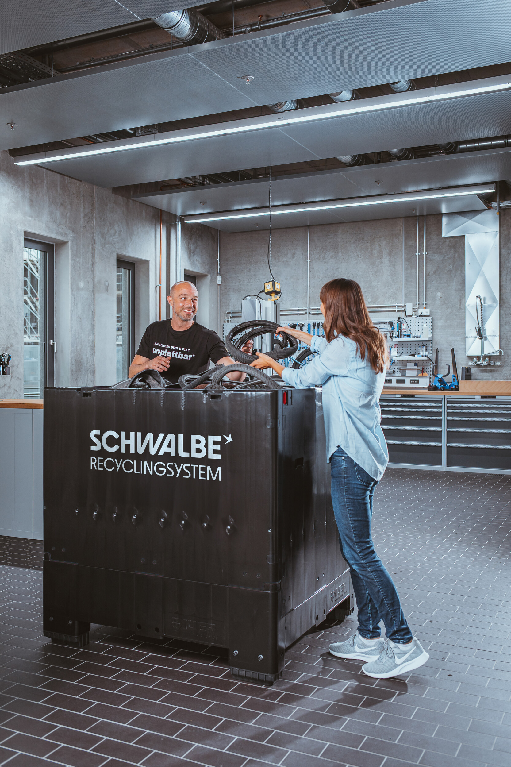 Gemeinsam mit unserem Partner Schwalbe recyceln wir deine alten Fahrradreifen und Schläuche.
